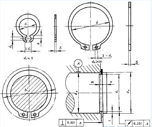 标准规定了轴径D=3~200mm的A型轴用弹性挡圈